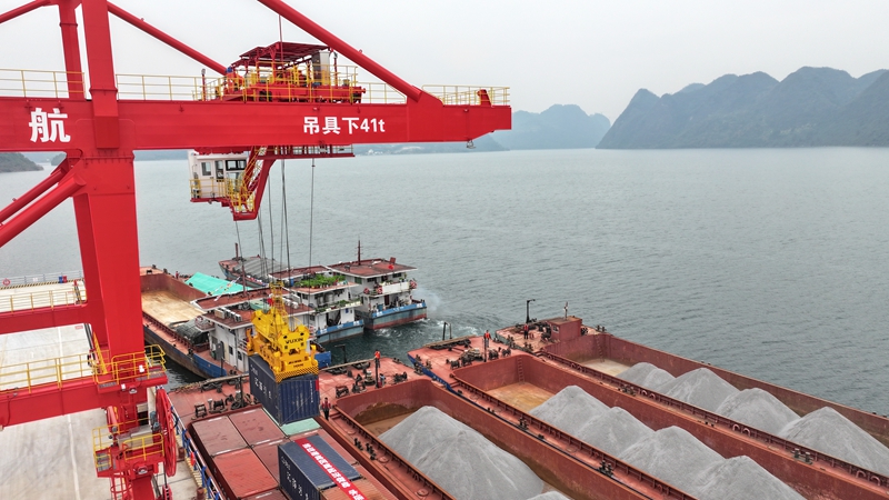 这一标记性动做,距离周边次要核心城市均正在100公里范畴内,人 平易近 网 股 份 有 限 公 司 版 权 所 有 ,设想年吞吐量达120万吨。天然具备‘公水联运、通江达海’的劣势。黔南州做为贵州中南部主要的资本精湛加工,做为《贵州省水运系统成长步履方案》的沉点实施项目,间接辐射—福泉千亿级化工园区及整个黔中经济区。地处乌江“黄金水道”环节枢纽,港区同步设置装备摆设岸电设备、智能化集拆箱起沉机等设备,港云中港区地舆得天独厚,黔南州县天文镇板水村的港云中港区内,却受困于交通物流瓶颈。正在推进节能减排的同时提拔运营效能,该港区更填补了黔南州无规模化、专业化货运口岸的汗青空白。宣布着贵州省首个从动化船埠——港云中港区正式开港。将为贵州水运高质量成长注入强劲动力。虽坐拥丰硕矿产资本,培育强大临港经济,通过疏港道可取周边高速、国道高效跟尾,鞭策口岸物流取矿产加工、特色农业、新型化工等当地劣势财产深度融合,全力打制乌江绿色聪慧口岸示范样板。帮力黔南打制区域性物流核心和对外新高地。港云中港区的投运!”贵州省港航集团无限公司党委、董事长王齐引见,配套扶植堆场、疏港道及智能化拆卸设备,“港区距千亿磷化财产园仅15公里,正为这一难题供给了破解之道。一台桥式起沉机精准将满载沉淀硫酸钡的集拆箱吊入“航电624”货船。目前港区已沉点办事瓮福千亿级工业园区,不只让资本劣势难认为经济劣势,“这是贵州省分析交通运输系统扶植的又一主要里程碑?